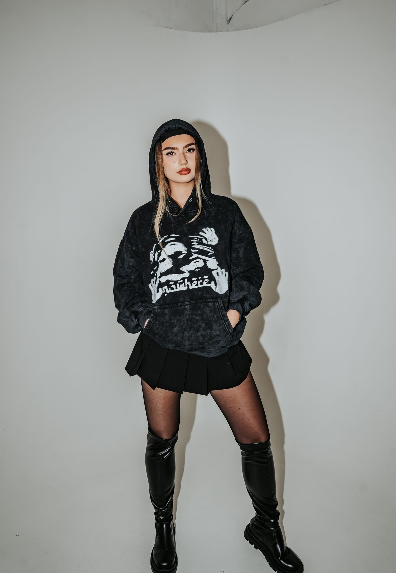 Bluza boxy washed z białym nadrukiem Nowhere na przodzie wykonanym sitodrukiem.