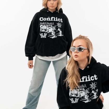 CONFLICT BLACK BOXY HOODIE